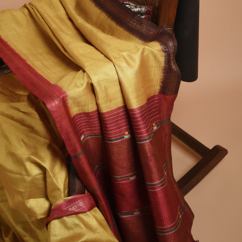 SAGAR Handwoven Tussar Silk Saree - Golden Sale