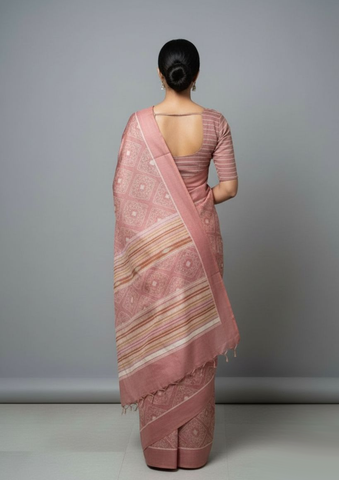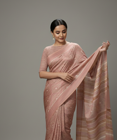 Vriksh revives the lost practice of NATURAL DYEING in the IKAT technique. The beautiful pink and rust color is sourced from manjistha giving notes of rust while the versatile pink are sourced from Catechu and Lac respectively. Beautiful narratives of Odisha are woven in fine intricate patterns using natural dyes all sourced from the environment which makes these beautiful designer sarees truly exclusive. Buy IKAT Masterpiece Handloom Handwoven Silk saree online with a single click.
