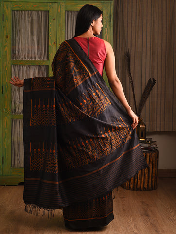 Celebrating Bali Jatra festival of Odisha, a beautiful historic cultural exchange between Odisha and South East Asia, handwoven in pure silk, this design offers a combination of Odisha's curvilinear ikats with subtle hints of Andhra's chintz motifs, Indonesia's spiralling tumple layout, Laos's extra weft patterns, Thailand's colour palette etc!