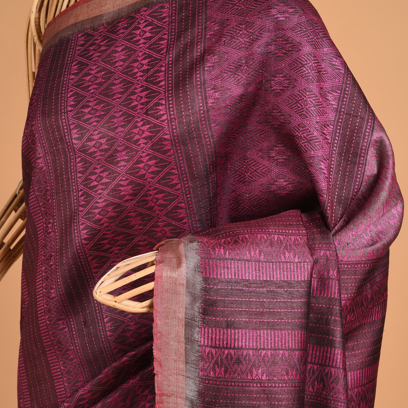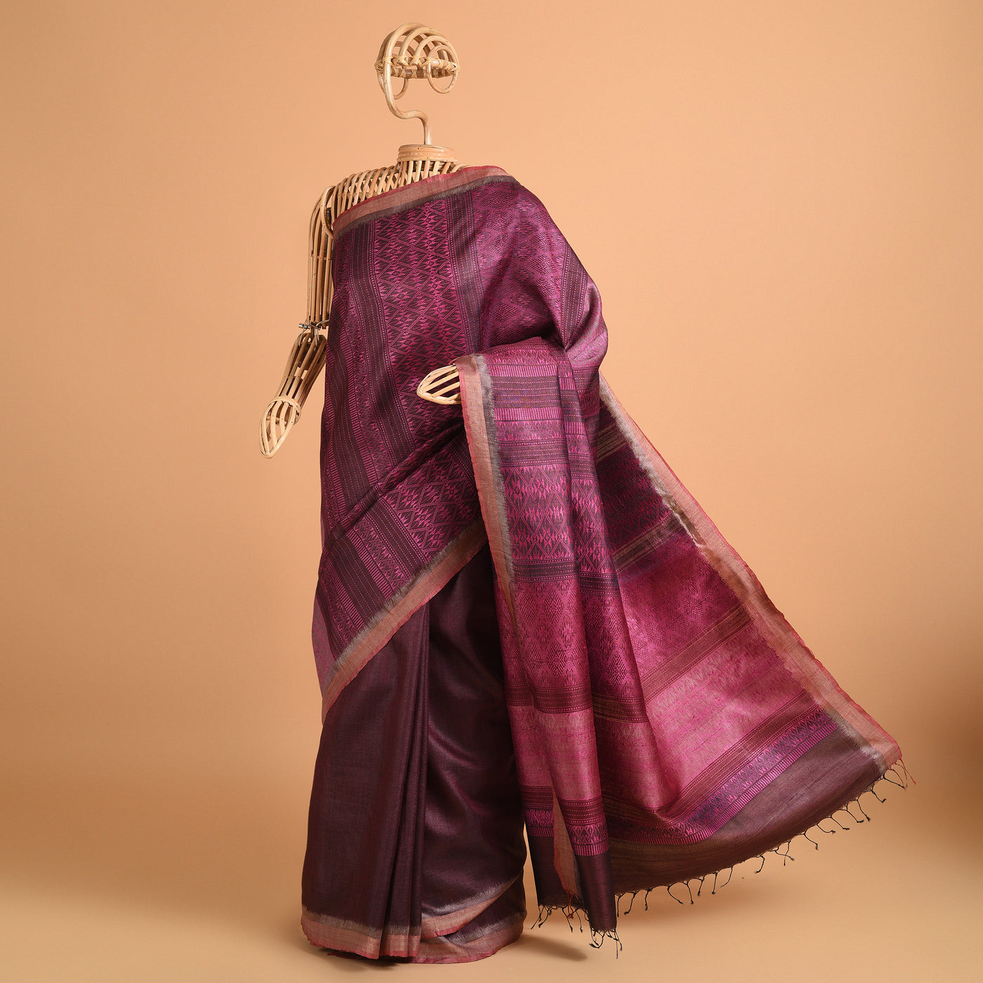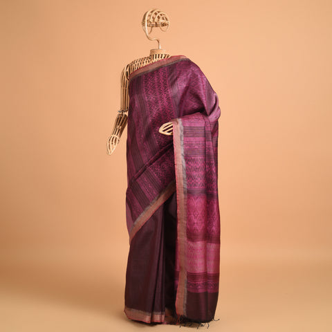 Parvat Long Pallu Handwoven Tussar Silk Saree - Burgundy Purple