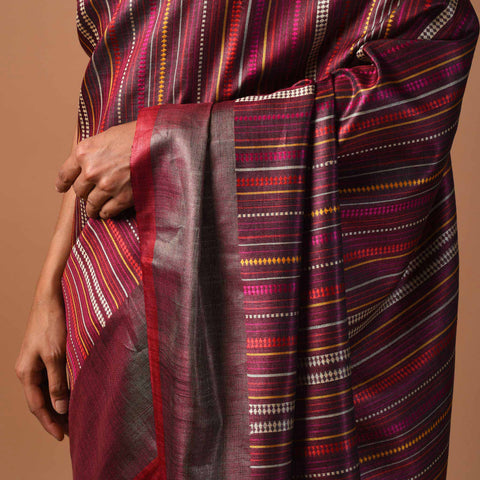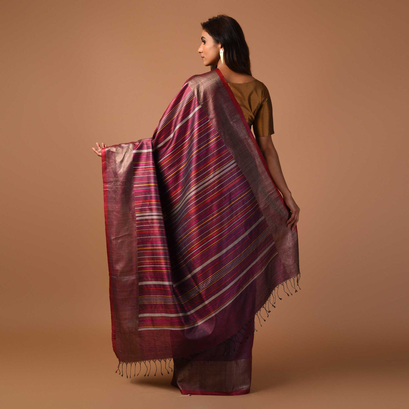 BEEJ Long Pallu Handwoven Tussar Silk Saree - Purple Maroon